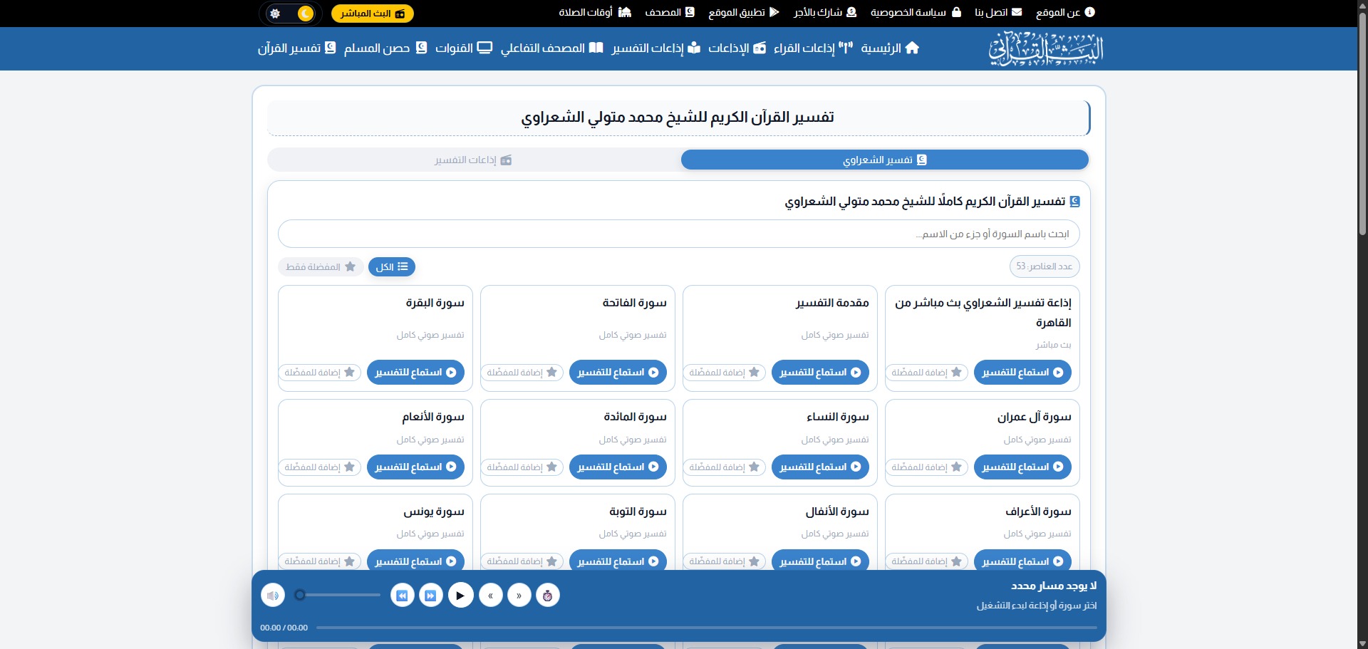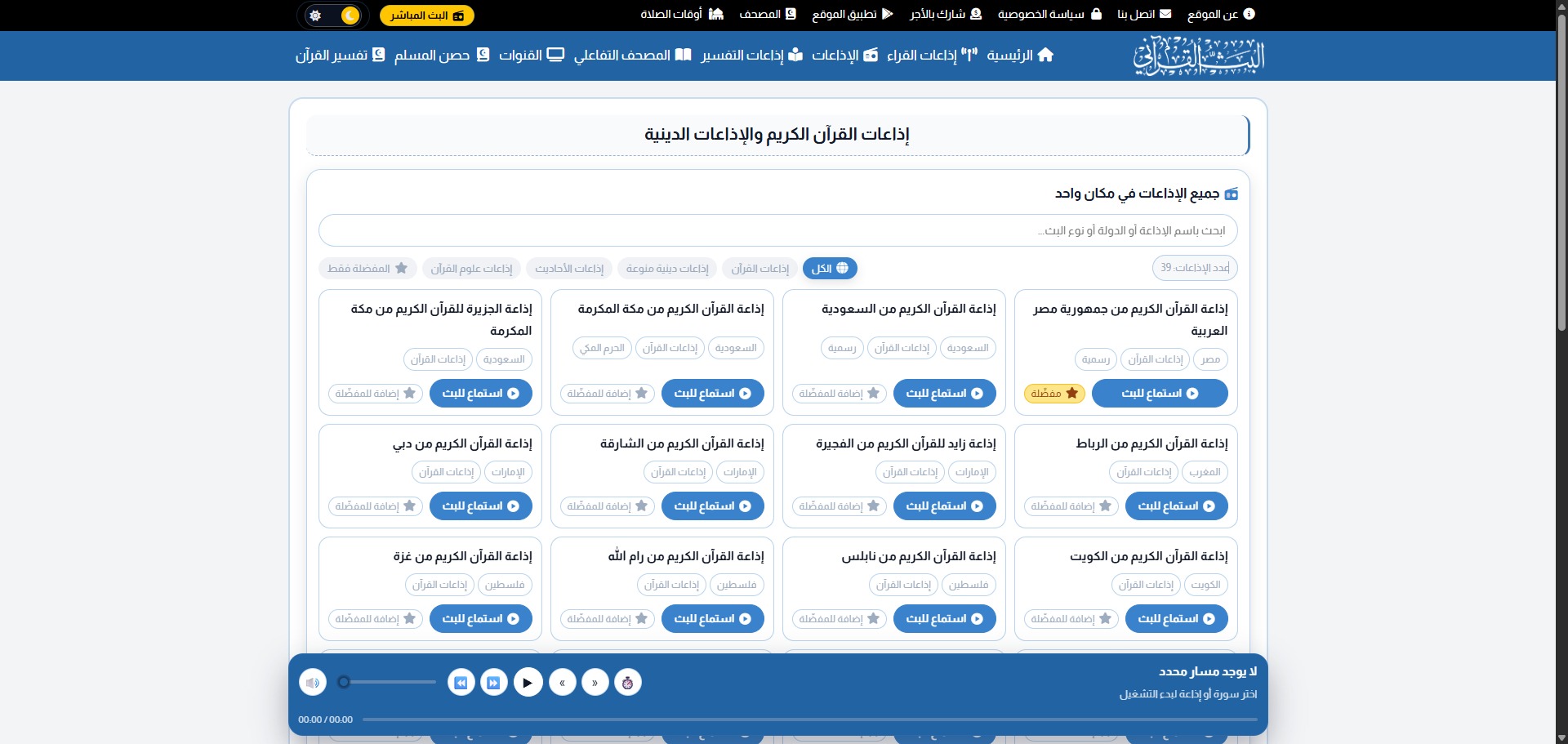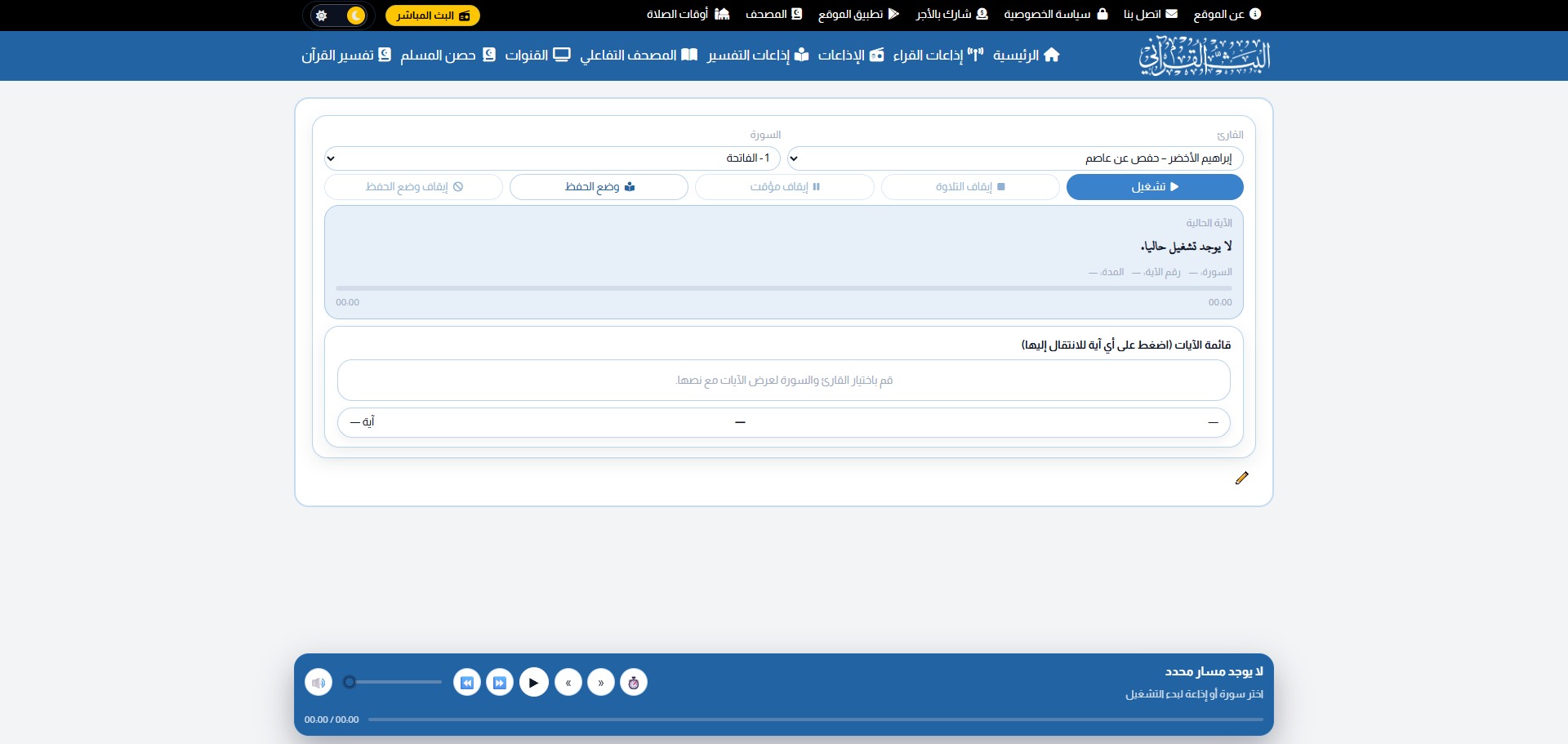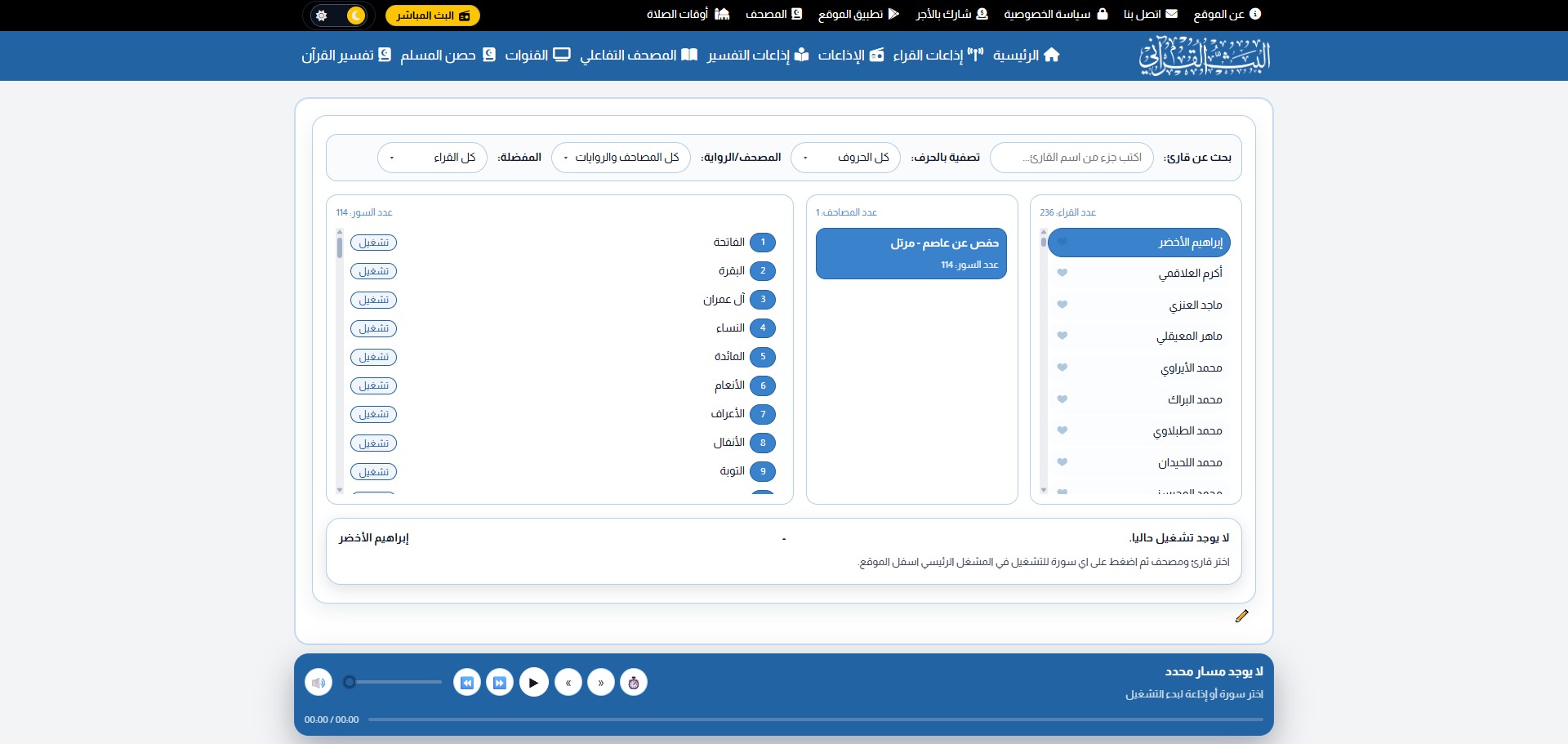 موقع البث القرآني هو موقع مخصّص لعرض كل ما يتعلق بسماع القرآن الكريم ومتابعته، من تلاوات مسجّلة، وإذاعات مباشرة، وتفسير، وقنوات قرآنية، في تجربة واحدة متناسقة وسهلة الاستخدام، لقد أنشأتُ وأطلقت هذا الموقع في الأول من فبراير 2020 كصدقة جارية عن روح والدي – رحمه الله وأسكنه فسيح جناته – وأسألكم الدعاء له بالرحمة والمغفرة.